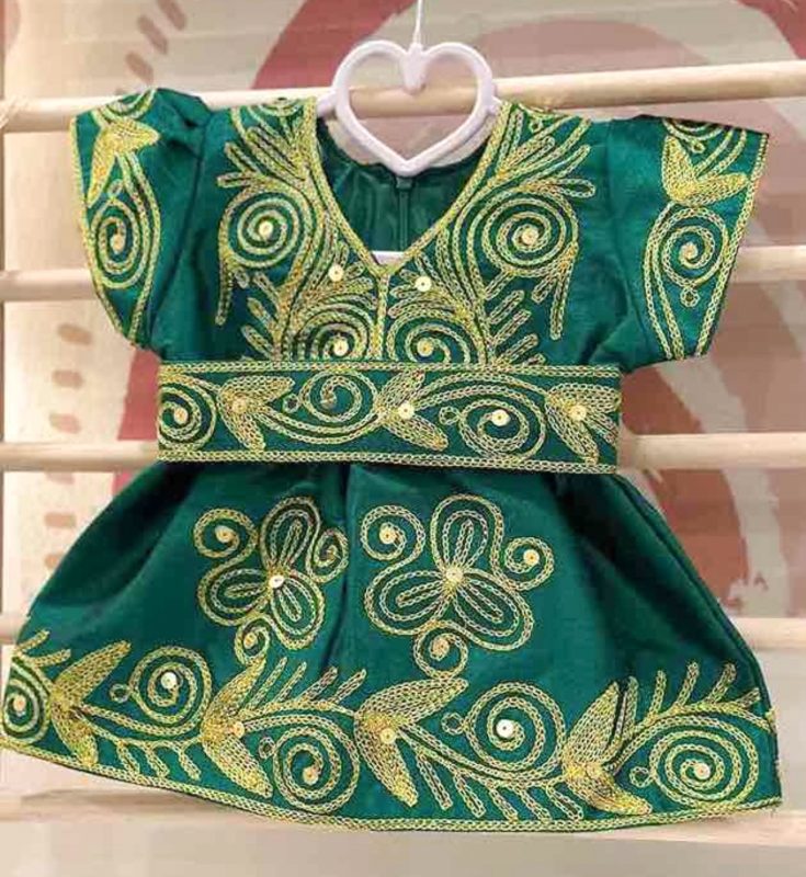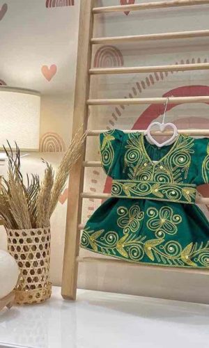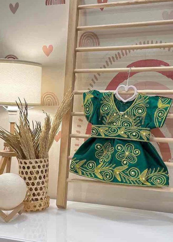 فستان تراثي أخضر وذهبي